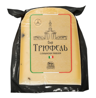 Полутвердый сыр с добавлением кусочков черного трюфеля.